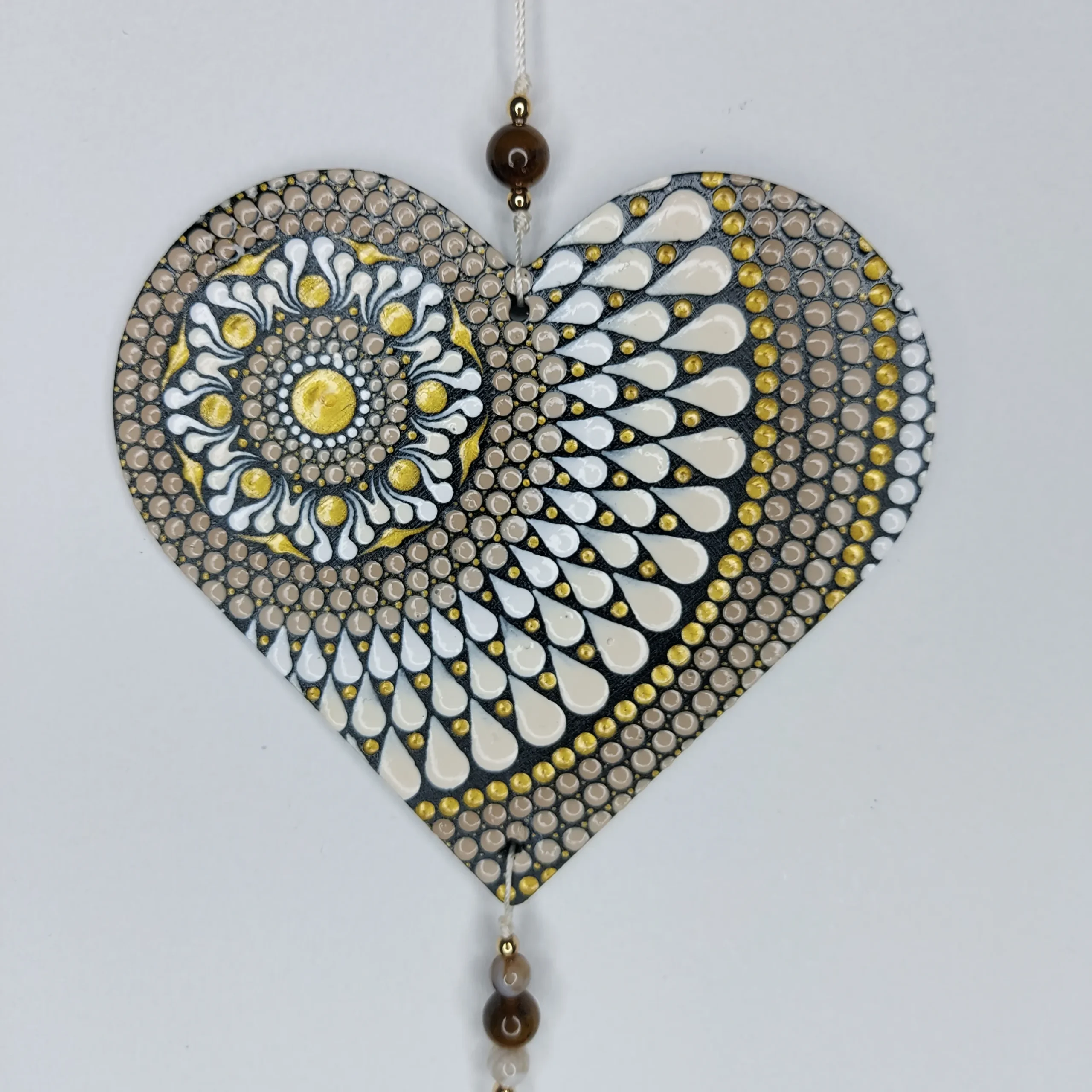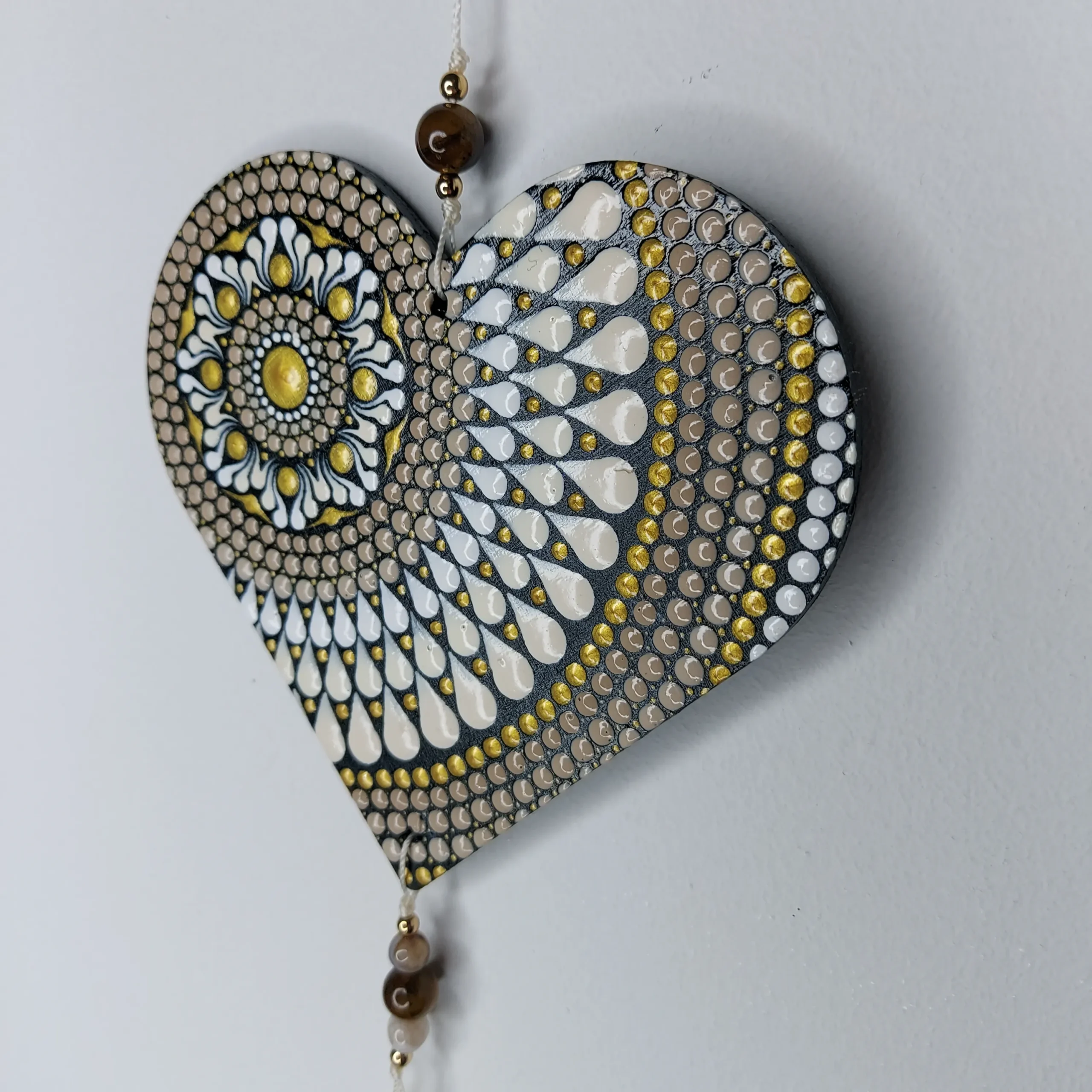 Biało-beżowe serduszko z wyjątkowym, koronkowym wzorem. Subtelność połączona z mocą.