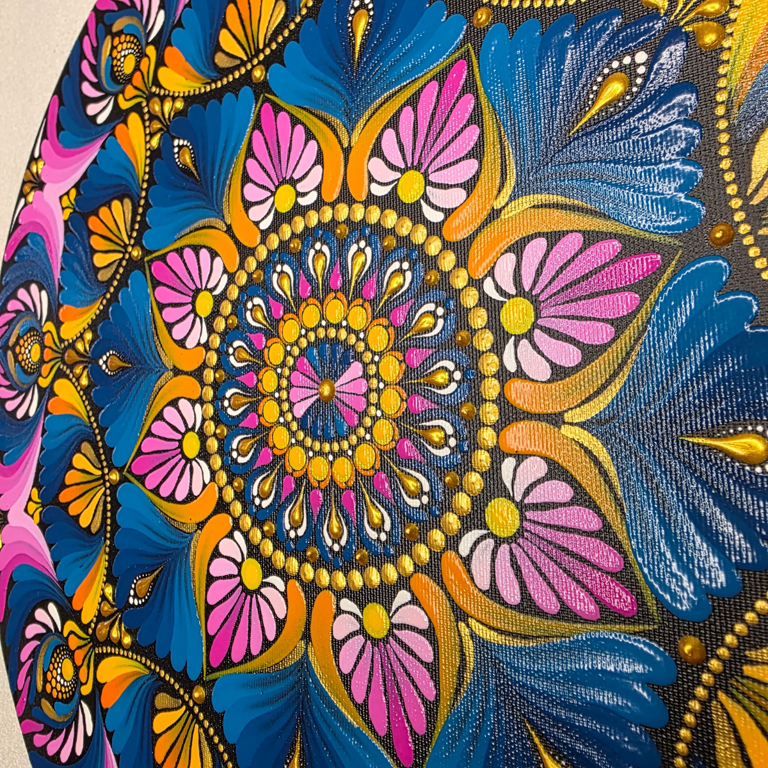 Mandala Księżycowa z nutką tajemniczości. Namalowana w intencji opieki nad osobą, która ją otrzyma.